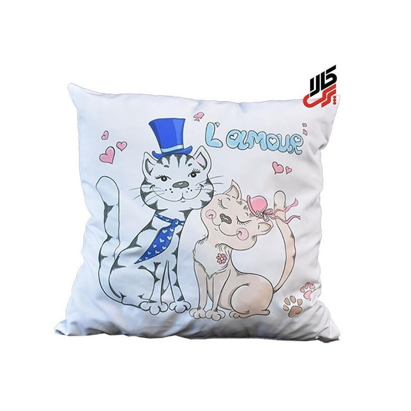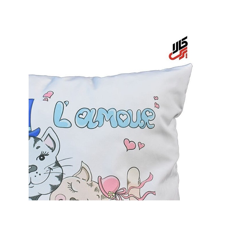 - کاور کوسن تزئینی سفید با طرح گربه های عاشق پرس کالا