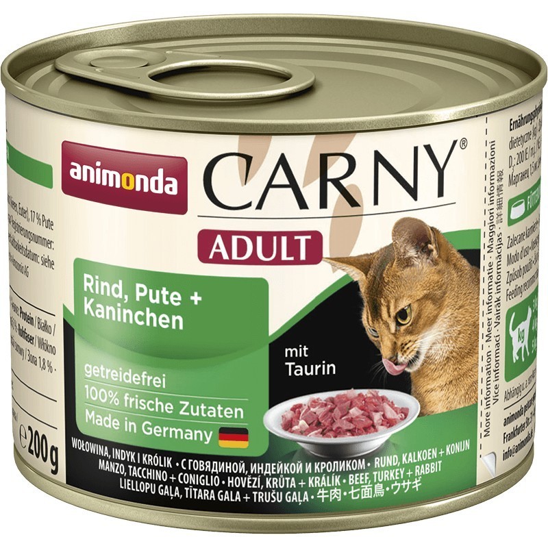 کنسرو پته حاوی گوشت گاو و بوقلمون و خرگوش مخصوص گربه بالغ کارنی