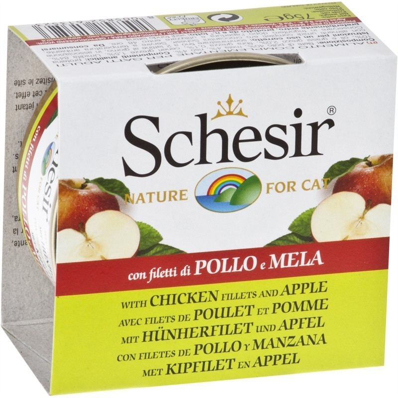 کنسرو شسیر فیله مرغ و سیب، بسیار مناسب برای گربه سخت پسند است. تولید شده از مواد ۱۰۰% طبیعی حاوی ترکیب تکه های میوه و بهترین قسمت های گوشت مرغ و فاقد رنگ های خوراکی و مواد نگهدارنده است. میوه ها و مواد تشکیل دهندهی موجود در کنسرو شسیر، به طور طبیعی، ویتامین ها و مواد مغذی را فراهم آورده که به سیستم ایمنی، فعالیت سلول ها و هضم غذا کمک می کند. سیب موجود در این کنسرو پروتئین و چربی کمی دارد و سرشار از پکتین، ویتامین B و بیوفلاوونوئیدها است که اثرات ضد پیری دارد. کنسرو شسیر زیر نظر متخصصان و با جدیدترین تکنیک ها تهیه می شود تا با کیفیتترین غذای گربه را در اختیار مصرف کنندگان قرار دهد.