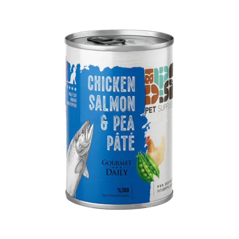 - با طعم گوشت مرغ،سالمون . نخودفرنگی