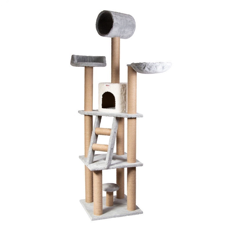 - ستون های بزرگ و قطور مدل بلوط پوشیده از الیاف طبیعی کنف بوده که برای اسکرچ کردن گربه ها بسیار مناسب است.