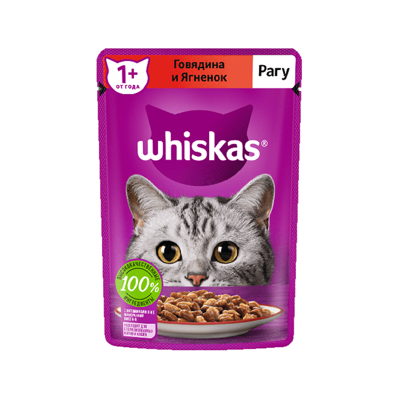 Wiskas Cat Pouch With Beef & Lamb In Sauce