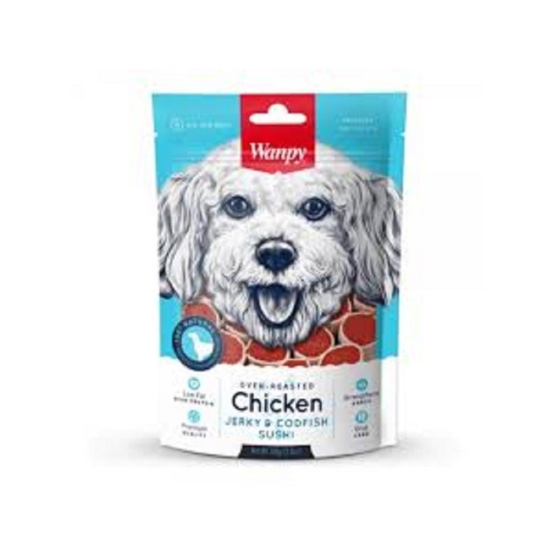 Wanpy chicken jerky & codfish sushi