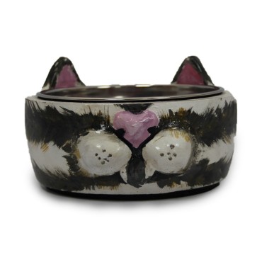 ظرف بتونی نقاشی شذه طرح گربه با کاسه استیل جدا شونده