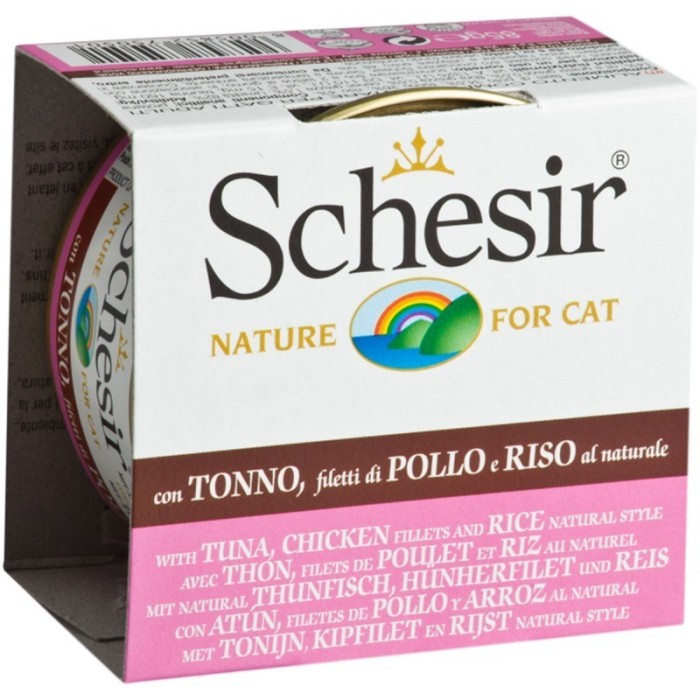 کنسرو ماهی تن و مرغ همراه با برنج شسیر Schesir از بهترین مواد اولیه 100 درصد طبیعی تهیه شده است و درتهیه آن هیچ گونه رنگ و مواد افزودنی و هورمون استفاده نشده است. این کنسرو با طعم خاص خود تجربهای جدید و خوشمزه را برای گربه شما به ارمغان میآورد. این کنسرو دارای تکههای ماهی تن و مرغ همراه با برنج بخارپز شده است که با روشهایی مشابه روشهای تهیه کنسروهای انسانی تهیه شده است. مصرف این غذا باعث اختلال در دستگاه گوارش نشده و میتوانید با خیال راحت آن را در رژیم غذایی گربه خود قرار دهید.